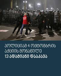 იმავე ღამეს დააკავეს 4 ოქტომბრის აქციის საორგანიზაციო კომიტეტის ხუთივე წევრი: პაატა მანჯგალაძე, პაატა ბურჭულაძე, მურთაზ ზოდელავა, ირაკლი ნადირაძე და ლაშა ბერიძე. ხუთივე მათგანს ბრალი უკვე წაუყენეს, მათ აღკვეთის ღონისძიებაზე თბილისის საქალაქო სასამართლო ხვალ, 7 ოქტომბერს იმსჯელებს.