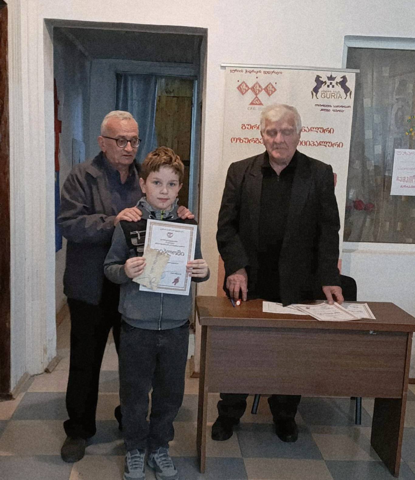 გაბრიელ სალუქვაძეს ტურნირის ორგანიზატორებისგან (გურიის ჭადრაკის ფედერაცია) დიპლომი და ფასიანი საჩუქარი გადაეცა.