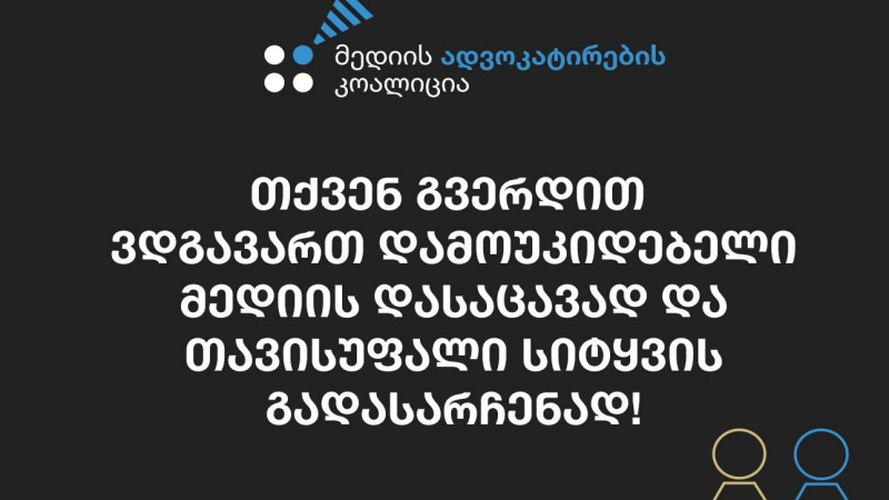 მედიის ადვოკატირების კოალიცია სრულ სოლიდარობას უცხადებს დამოუკიდებელ ჟურნალისტებს და პატივს სცემს მათ პროფესიულ საქმიანობას.