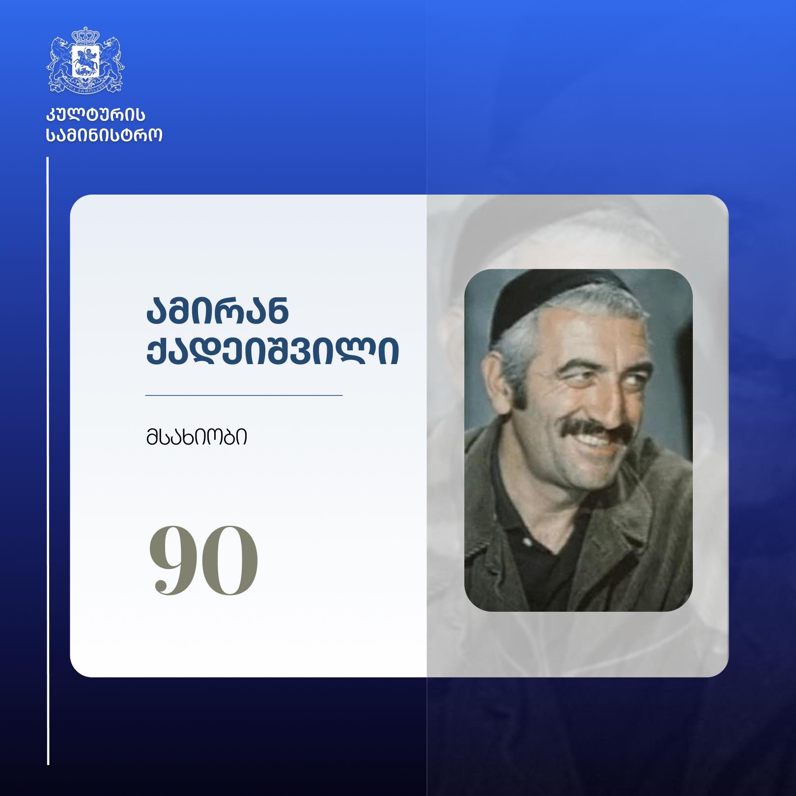 მსახიობ ამირან ქადეიშვილის დაბადებიდან 90 წელი შესრულდა.